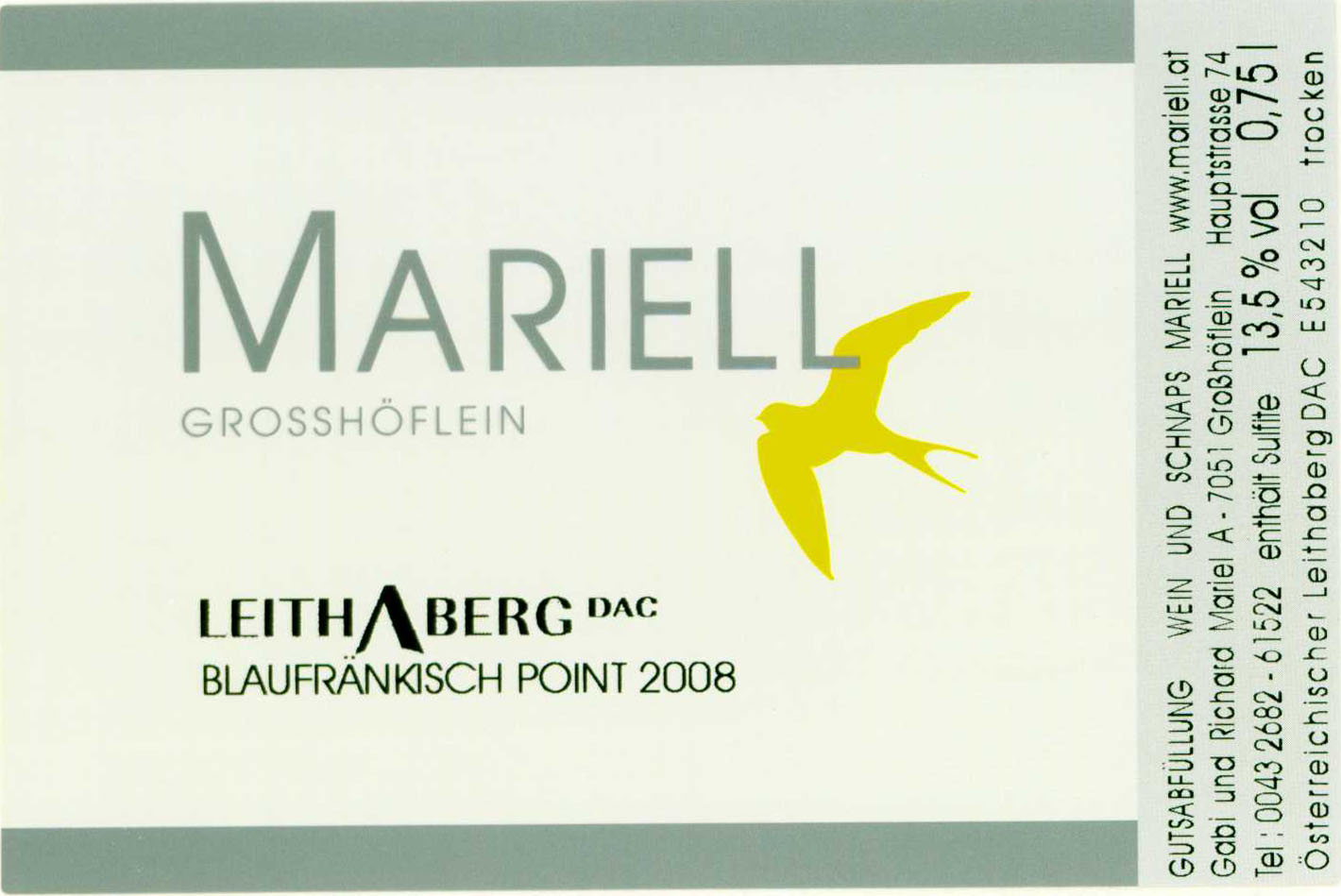 Mariell Blaufrankish Leithaberg Point, 2013
