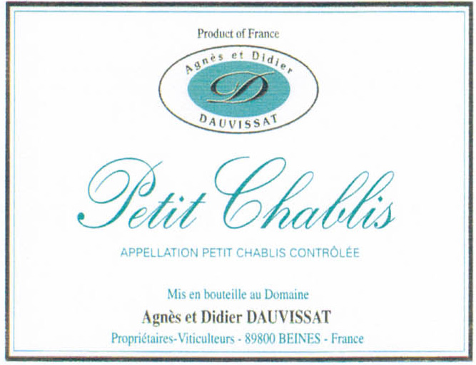 Anges & Didier Dauvissat, Petit Chablis, 2022
