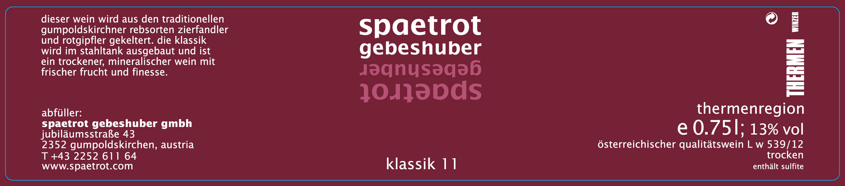Spaetrot Gebeshuber, Klassik white, 2012